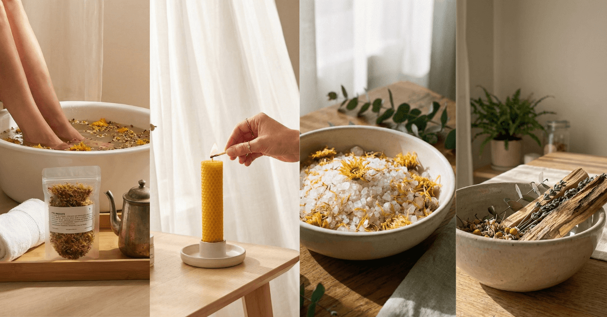 Productos holísticos para rituales y bienestar: velas, baños herbales y sales aromáticas para armonizar tu energía y relajarte en casa.